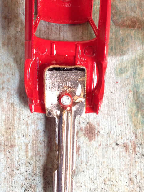 Con la llave en lugar usted puede rápidamente volver a montar el coche, terminando el trabajo con dos toques de epoxy en los agujeros a la izquierda de quitar los remaches antes. Después de que ha pasado el tiempo dictado por su marca de epoxi, debe tener un sólido, seguro vínculo que puede contener hasta un uso repetido.