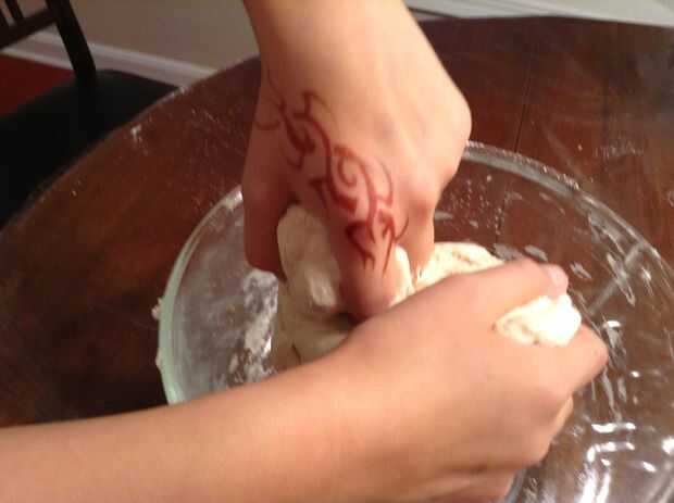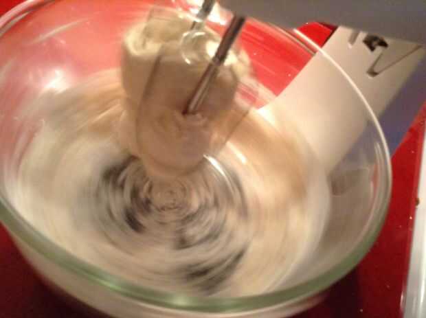 Amasar la masa en una batidora o a mano durante 5 minutos, hasta que esté liso, suave y bastante flojo. Luego espolvorear con harina y ponerlo en una bolsa de plástico. Cierre la bolsa, (dejar espacio para ampliar la masa) y déjela en reposo durante 30 minutos.