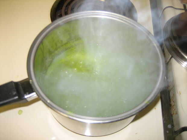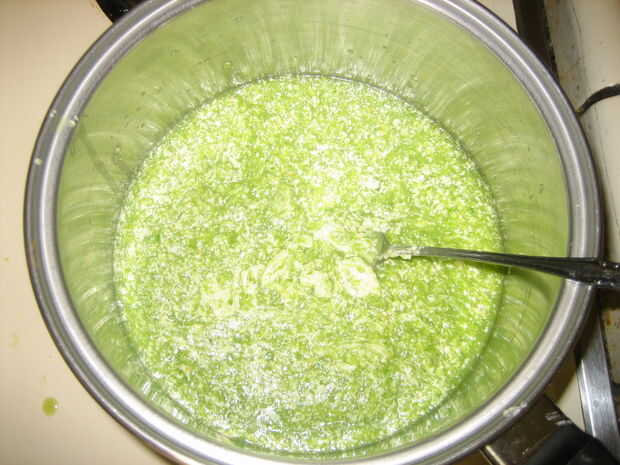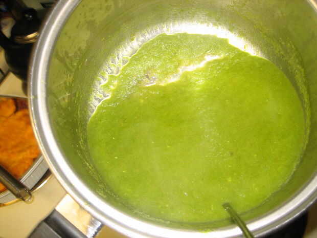 En este punto, la salsa sigue siendo bastante delgada y tiene un color entre pistacho y sopa de guisantes.