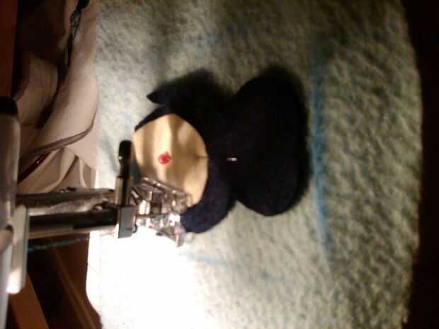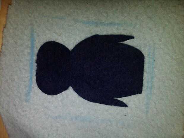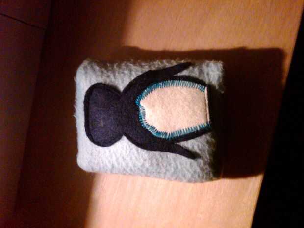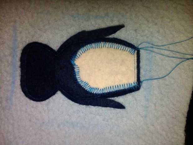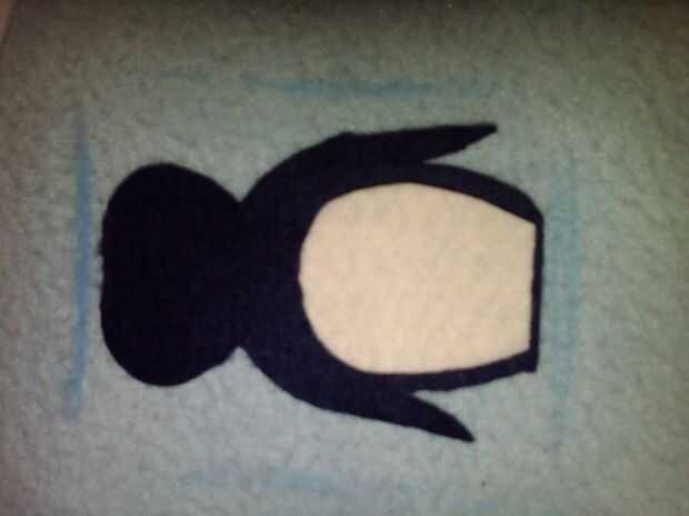 En el azul, que me organizado y había creado mi pingüino antes de coser para arriba el paño grueso y suave! He subido una selección de imágenes que muestran cómo se hizo el pingüino. Para asegurarse de que el motivo era el tamaño correcto, llamé simplemente alrededor de la bolsa interior en mitad del lana usando la marca de tiza, por lo que pude frotar apagado cuando estaba hecho.