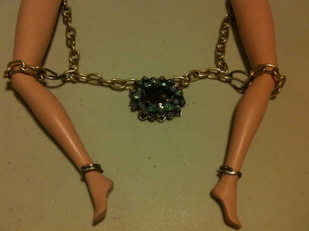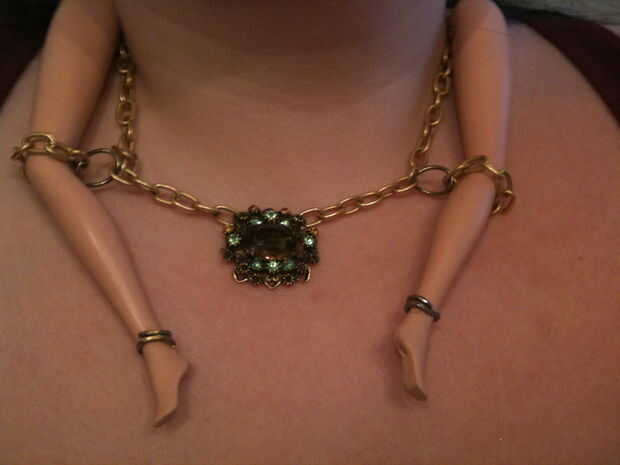 Bien, aquí es una manera muy extraña con piernas de Barbie en un collar! Son fácil de pop de la muñeca, pero un poco difícil poner correctamente para trabajar con la pieza y obtener el producto deseado final. Jugar un poco con ellos, utilice la cadena, tomar un quemador de madera para ellos y hacer ellos hacen lo que quieras, luego te has tener un collar para un loco, como moi! : D