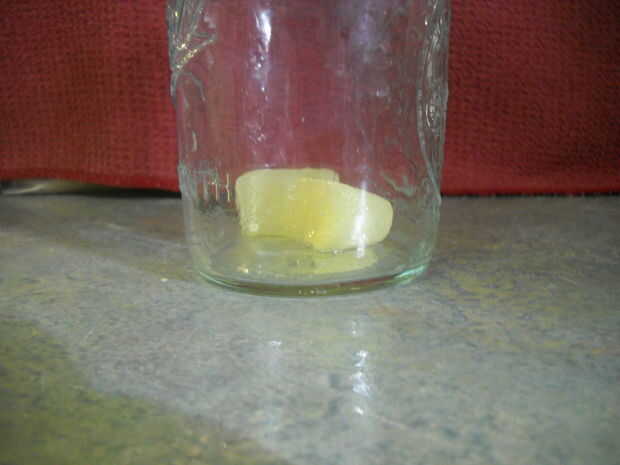 El verano pasado mientras que los limones eran más baratos, compré muchos de ellos (hace 60 cuenta como mucho) y el jugo de limonada exprimida fresca.  Lo que no utilizamos a continuación, vierte bandejas de cubos de hielo y congeló para "más adelante".  Ahora es "más adelante" pongo dos cubos de jugo de limón en un recipiente para descongelar.