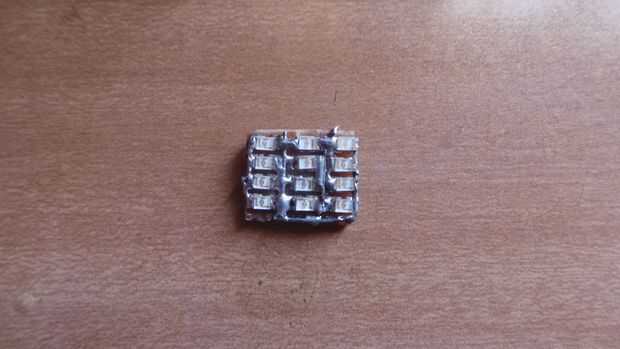 Corte 4 x 5 agujeros tablero perforado y soldadura 12 LED, tres LEDs de cada fila. Utilice una punta de soldadura para soldar lo smd. Consulte el diagrama del circuito para las conexiones. También una positiva articulación terminal debe pasar a través de la parte inferior del tablero. Esta articulación se utiliza como el terminal positivo de la célula de la moneda.