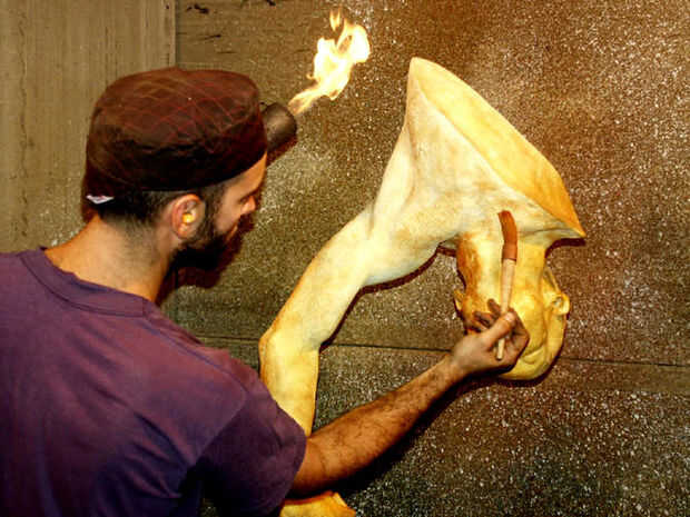 Después de que termines con el nitrato férrico, comenzar aplicar nitrato cúprico para añadir complejidad. Esta capa es menos incluso que los pasos anteriores para acentuar ciertas partes de la pieza. Puede enfocar más calor en ciertas zonas para lograr tonos más oscuros o incluso poner la llama del soplete directamente sobre el cobre justo después de que se aplica. Esto hará que el opaco ir cúprico verde azulado. Si trabajo fresco, tenga cuidado de que no "arrastrar" los productos químicos por debajo de como este se conducen a una pátina aspecto fangosa. Algunas de esta capa pueden hacerse con cepillo seco. Sacuda la mayoría del producto químico fuera del cepillo y cepillo muy luz de las altas capas de la pieza. Esto es especialmente eficaz en llevar a cabo la textura de una pieza.