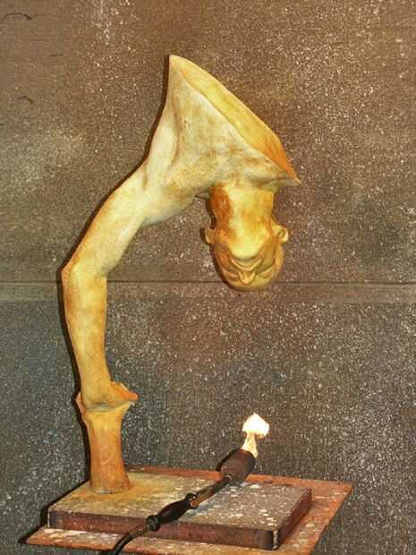 aquí es una escultura que hice hace unos años que combinado fundido y fabricados de bronce. Fundición de bronce se puede hacer en su patio trasero si tienes un soplador de hojas y un pequeño horno refractario. Bastidor de arena, en particular, es una