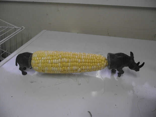 Inspiró a participar en el Concurso de pegamento caliente fui a la tienda local de $2 y compré un cheapo pistola de pegamento caliente y un par de animales de juguete de plástico. Tomando un ejemplo de mikeasaurus y su dinosaurio titulares de mazorca de maíz pensé "bien en lugar de resina, por qué no tratar de pegamento caliente!"