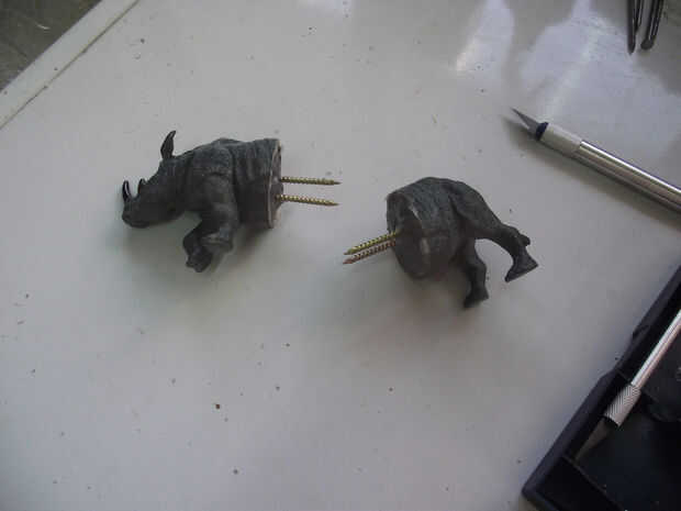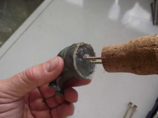 Originalmente iba a usar un par de titulares de mazorca pequeña que compré (de la tienda $2) pero eran un poco endebles, así que decidí utilizar algunos clavos anillados "más robusto".
