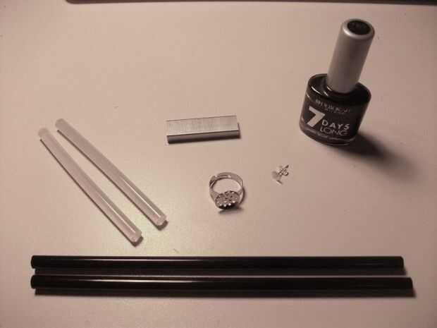 -Pegamento negro palillos o palitos de pegamento transparente + esmalte de uñas negro