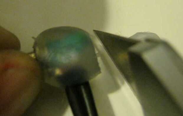 2. Una vez fría, cortar cualquier exceso. Asegúrese de limpiar la base de la punta para que se deslice en una toma sin problemas.