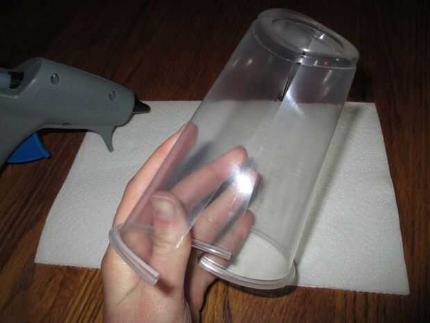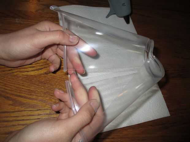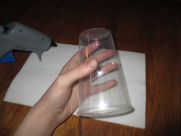 En primer lugar, tienes que tomar un vaso de plástico y sus tijeras. Con las tijeras, corte verticalmente desde el extremo abierto de la Copa hacia la base.