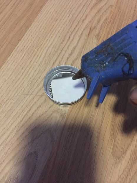 Llenar la tapa con pegamento caliente y deje que se seque.