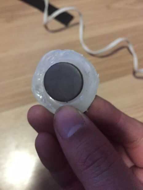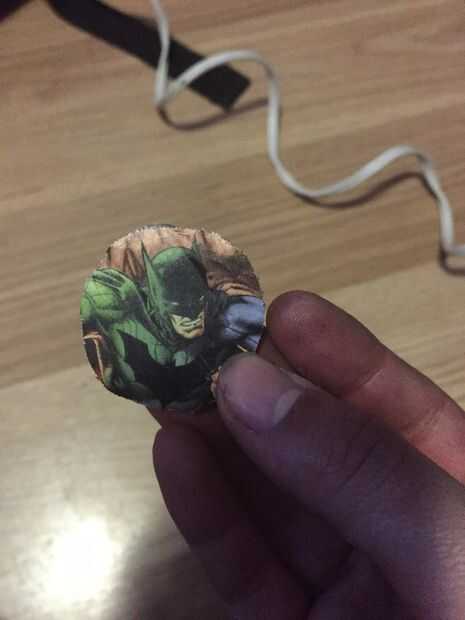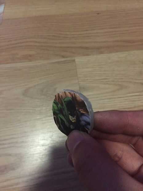Cuando se pude quitar el pegamento, el gráfico era un poco distorsionada en el borde de la constante empujando de la navaja, por lo cutaround el borde y lo hizo en un círculo más pequeño con las tijeras. Esto es bastante fácil ya que el pegamento caliente es relativamente suave para cortar.