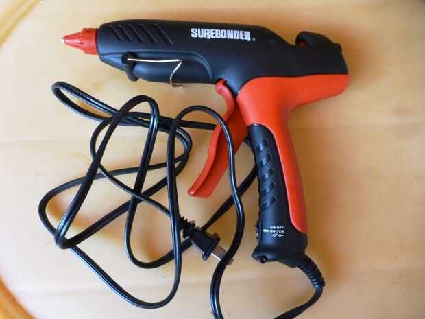 • Pistola de pegamento caliente. Utilice una pistola de pegamento industrial de alta temperatura. Baja calidad que no puede producir una forma acabada limpia.