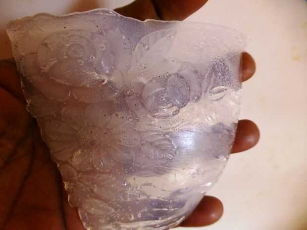 Sienta los moldes en el congelador con sus dedos. Si están tibias, mantenerlos por más tiempo. Si están fríos puede llevarlos a cabo. Basta con pulsar hacia fuera las formas de los moldes, es muy fácil con moldes de silicona flexible. Puede despegarse la capa delgada que vierte sobre la impresión de la flor de silicio.