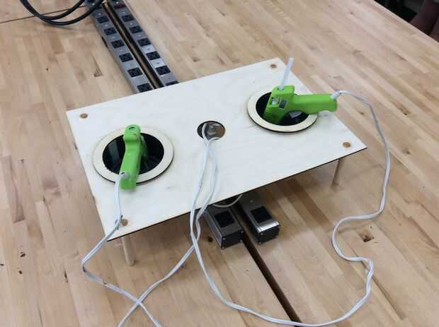 En este proyecto vamos a utilizar varios palitos de pistola de pegamento y conectar cada uno en dos tubos de impresión 3D que son todos fijos en un láser de cortan 2D base. Dentro de cada tubo hay es que un LED conectado a Arduino que controla cómo e