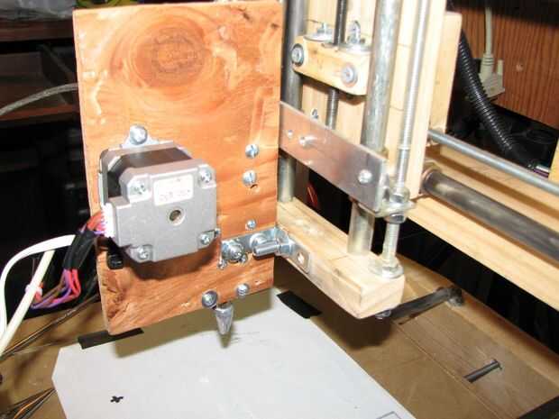 El montaje es fácil! Básicamente la extrusora está atornillada con solo 2 1/4-20 "largo del perno en el eje Z de una máquina CNC. 1 perno apretado es suficiente para que lo apoyen. Recordar que hay no hay corte sucede aquí. A chorros hacia fuera de pegamento caliente. Solo tenemos que apoyar el estirador y el pegamento caliente. Hay un pequeño arrastre con la protuberancia pero no mucho.