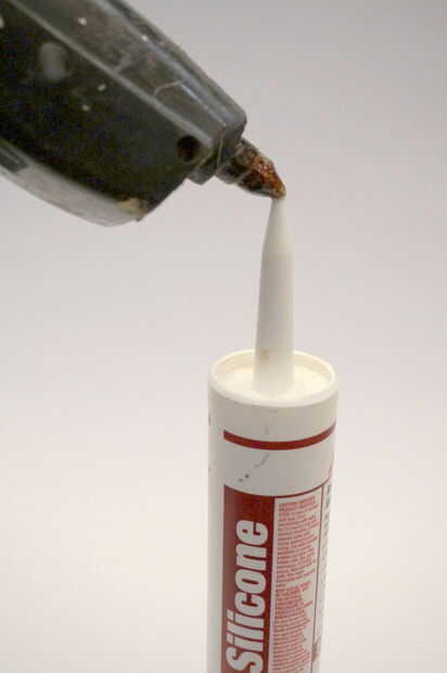Esta idea me vino cuando me poner guarnición en y acabado de la escalera de mi mamá y fue para calafatear las esquinas. Sólo utiliza la mitad de un tubo y no quiere perder el resto. Ese mismo día que estaba en la segunda tienda y encontró una pistola de pegamento caliente fornido por unos dólares. Así que pensé en usarlo para sellar el extremo del tubo.