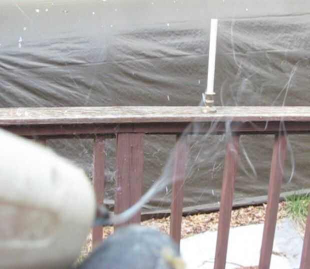 4. Apriete de pegamento. Como el pegamento gotea en la corriente de aire el aire cogerla y tirar en un filamento delgado y soplar lejos de usted.