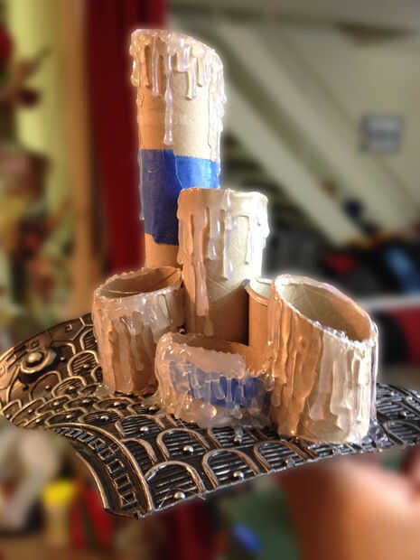Para crear la cera como efecto yo simplemente goteó pegamento caliente por los lados del tubo de cartón y deje que se ejecute de forma natural. Este proceso requiere tiempo y mucha paciencia. Realmente no existe una manera incorrecta para hacerlo pero ten en cuenta que se desea ver cierta separación en el "goteo" así que parece que se ha formado lentamente con el tiempo. Recuerde, tenga cuidado! El pegamento caliente es caliente y se quema rápidamente.