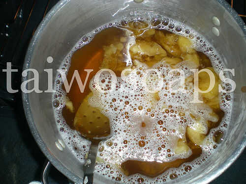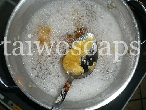 Pega tu olla en el horno y continuar la cocción, hasta que el jabón se haya derretido en agua y tiene una textura consistente.