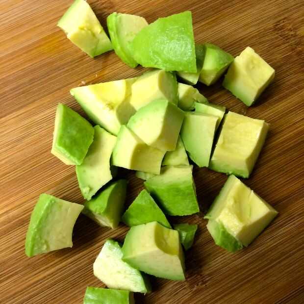 Pelar el aguacate y picar en trozos pequeños.