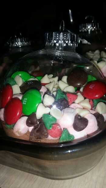 bastante mucho auto explicativa, pero lo que hice fue primera línea encima de todos los ornamentos, llenaron cada uno con cantidades iguales de la mezcla de cacao, luego añadí las melcochas, luego fritas y m & ms! allí rápido y diversión y todo el mundo ama el chocolate caliente! se puede sustituir cualquiera de los ingredientes mencionados, menos azúcar, azúcar gratis etc... dar a amigos y familiares y tienen felices fiestas :) gracias todos! Big ups y reconocimiento a mi novia para mostrar este bonito trabajo me =) xo!