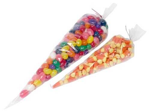 Pour en polvo mezcla de cacao caliente en una bolsa de cono grande hasta que la bolsa es aproximadamente 3/4 completo. Colocar malvaviscos miniatura y rojo y granas verdes en una bolsa de cono separado, llenar el bolso cerca de 1/2 de lo completo. Listo la bolsa pequeña de malvaviscos dentro de la gran bolsa de mezcla para que las melcochas descansan encima de la mezcla. Sellar las tapas de las bolsas con una ligadura sólida.
