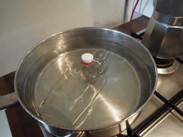 A preparar y desinfectar la botella que se va a celebrar la salsa colocar en una cacerola para que fuera y dentro de la botella de hierva buena (unos 5 minutos) también te recomiendo el embudo algunos de tiempo así que esto es así desinfectada a algún recipiente de agua hirviendo. Ponerlo todo boca abajo sobre una toalla limpia para secarse. Si haces esto y tienes una botella de cierre airtied buena la salsa buena mantenerse durante 3 semanas en la nevera.