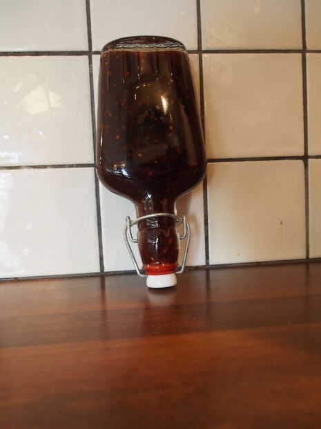DESPUÉS de cerrar la botella colocarla boca abajo para enfriar de esta forma habrá como poco aire como sea posible dentro de la botella para no estropea su salsa tan rápido.