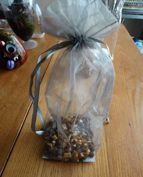 Cucharada de la mezcla seca en la bolsita de. Llene la bolsita cómodamente; no hay necesidad de empacar demasiado.