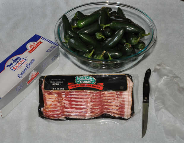 Tocino - me gusta el tocino gratis, carnoso, natural de la hormona como esta marca. Necesita 1 rebanada de tocino por pimienta. Compré 3-12 onzas paquetes de 50 pimientos grandes. Pimientos pequeños utilizará aproximadamente 1/2 rodaja.