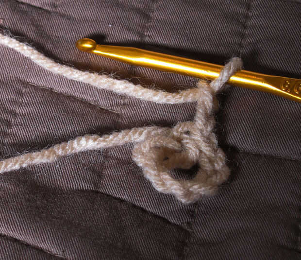 Con solo puede hace un lazo anudado en el extremo del hilo y hace una cadena. Después de tener seis puntos de sutura, cerrar el ciclo y tienen un anillo pequeño, dos puntos más de la cadena y crochet doble al principio. La yarda alrededor del gancho del lazo, inserte el gancho a través del anillo, la yarda del gancho agarrador y llevar a través de los hilos hasta que haya un solo lazo, repetición.