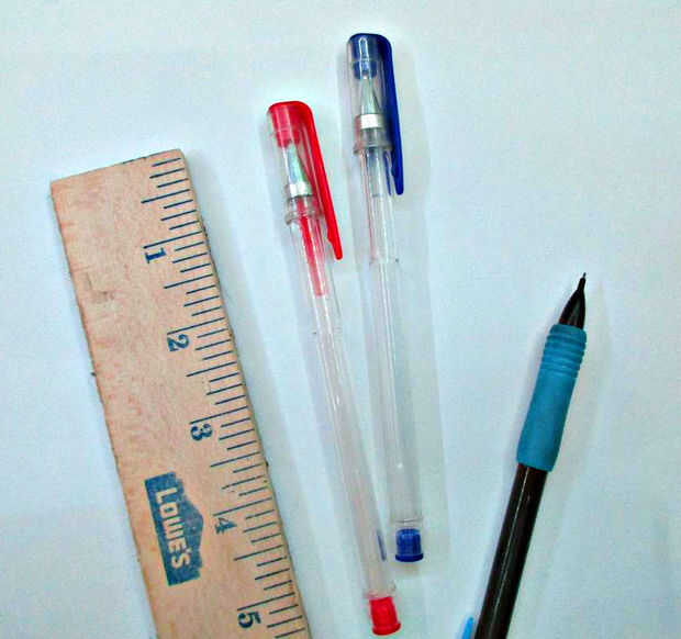 Los requisitos para este proyecto son simples. Usted necesitará dos bolígrafos, un lápiz (con una goma de calidad), una regla y una hoja de papel.