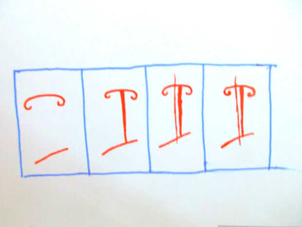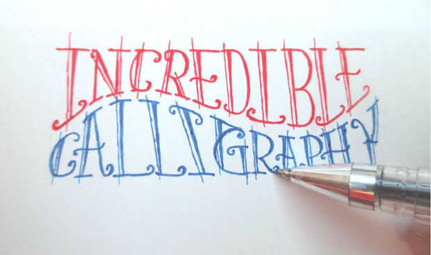 La fuente implica tener una línea en la carta que se sustituye por una línea gruesa hacia la parte inferior se va estrechando hacia abajo. Al lado de esta línea gruesa es una línea fina (tan fina como se puede hacer). Estas cartas tienen bases amplia que en ocasiones terminan en un rizo. Esto suena complicado, pero si nos fijamos en las fotos podrás ver lo que quiero decir.