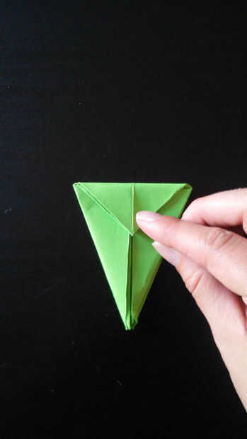 4. ahora debería ver un triángulo en la parte superior del papel. Doble ese triángulo hacia abajo para formar un triángulo con su papel