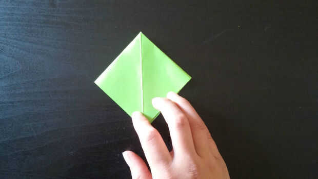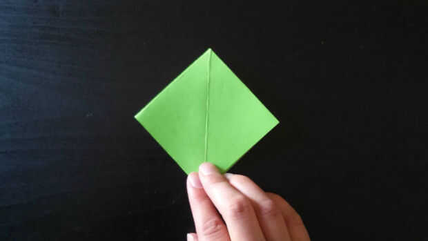 1. Diagonal doblar los bordes de la parte inferior del papel para el pliegue del medio