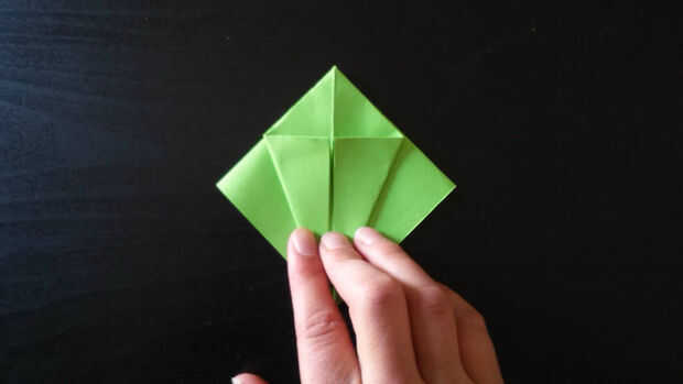La Plaza alrededor de la vuelta hasta tener forma de diamante con los extremos abiertos del papel hacia abajo