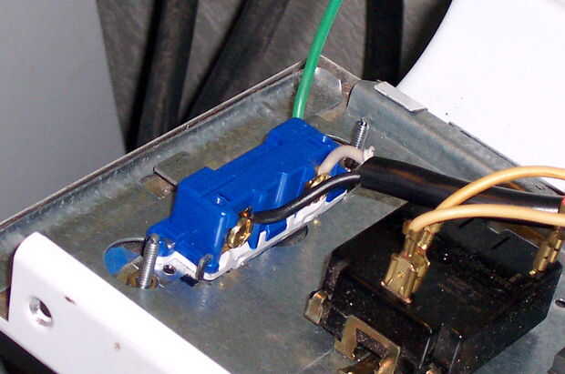 Quite los tornillos y las lengüetas de retención poco de los extremos del interruptor. Empuje de nuevo a través de los orificios en el panel de control desde el exterior y deslice la retención pestañas detrás en ellos en el interior, que les todo el camino. Coloque el interruptor en los dos tornillos, seguidos por las arandelas y las tuercas.