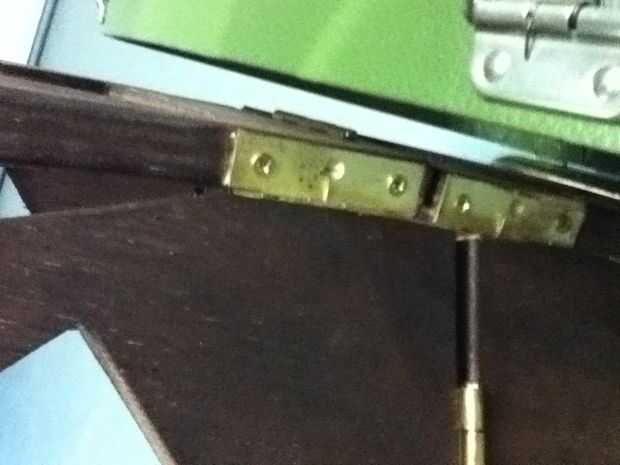 La colocación de las bisagras se va a ser los más difíciles de describir. Puedo hacer mi mejor esfuerzo y entonces le sugiero que vea el video despliegue tiempo una pareja para tener una idea de como se mueven las cosas. Echa un vistazo a las fotos con subtítulos para descubrirlo y no dude en hacer preguntas.