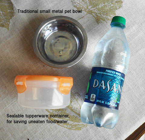 Llevar una botella pequeña de agua también es una buena idea que cumple múltiples funciones. Si un gato ha sido atrapado en algún lugar durante un tiempo sin acceso al agua, tendrá que hidratarse. Usando tu recipiente para llevar, usted también puede ofrecer agua a un gato callejero en un día particularmente caliente para ayudar a prevenir la hidratación que se produzca en primer lugar. Agua también puede ser vertido en una esquina de la toalla y para limpiar una herida en una pizca.