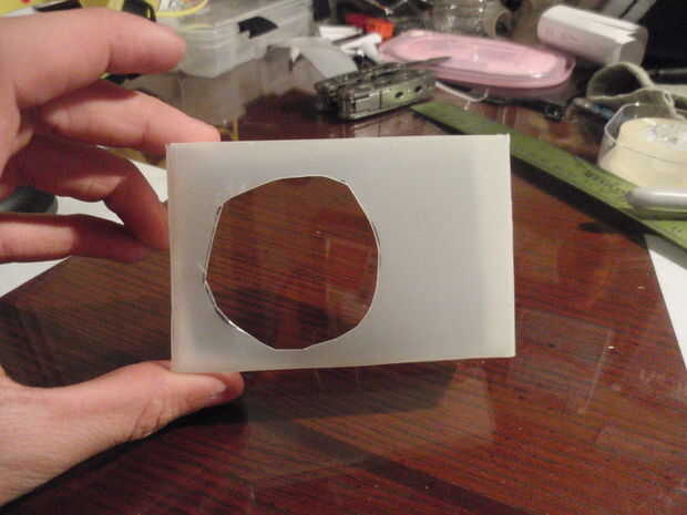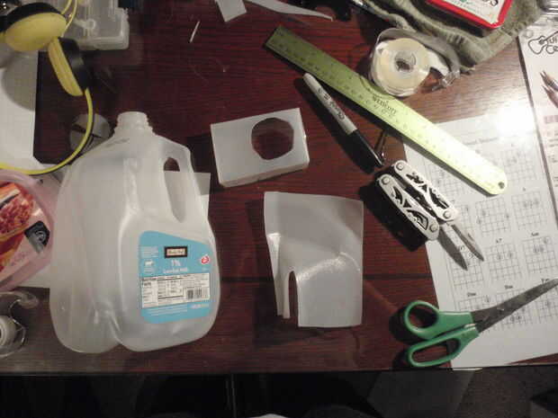 me llevó un viejo cartón de leche y cortar un rectángulo con las paredes laterales para alojar la cámara en sí. Tengo que cortar una zona ou de la lente pegar a través. Esta parte es muy straightfoward. En el futuro, puedo añadir agujeros en la parte superior para que pueda encender y apagar la cámara fácilmente y empezar la videocámara.