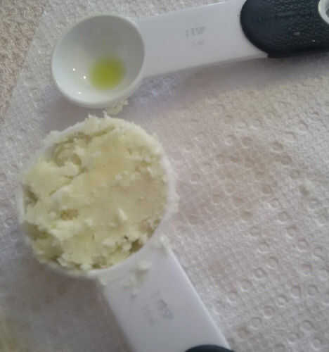 Combine los primeros 5 ingredientes (no agregar el agua o los aceites esenciales sin embargo).
