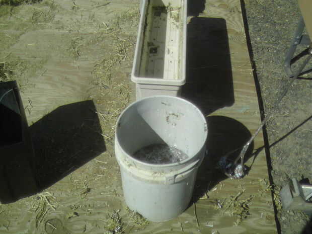 Llene la cubeta con papel, luego mojar todo y revolver.