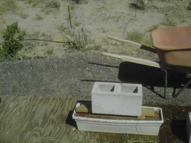Un pedazo de madera contrachapada de montaje sobre la parte superior del molde compacta la mezcla.