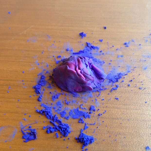 Vierta en un polvo. como es una pieza relativamente pequeña de masilla no necesito usar mucho para obtener un muy llamativo color púrpura.