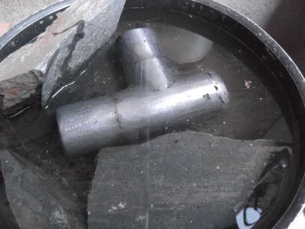 Así es. Hierve durante una hora en vingar y este proceso desarrolló una pátina de ceniza negra. Y reveló todas las soldaduras, uy!!!