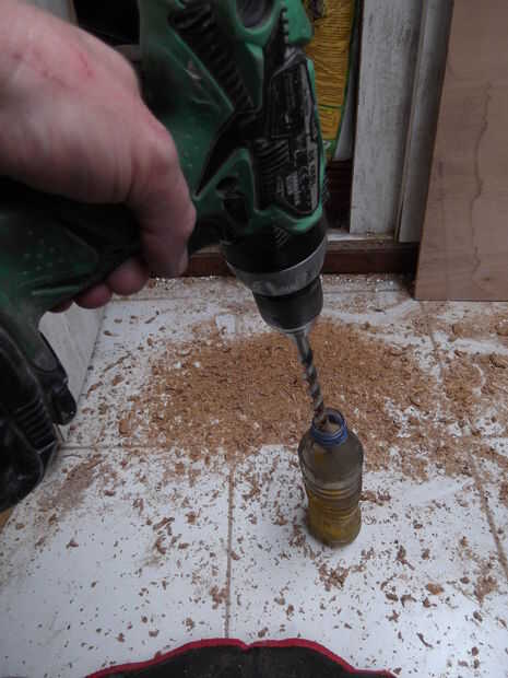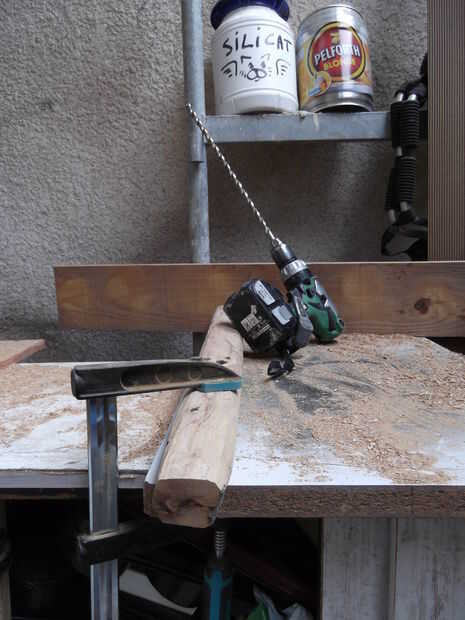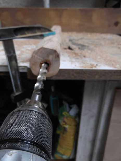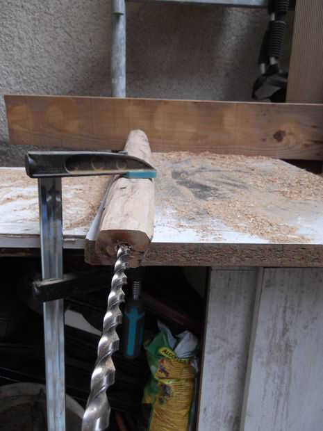 El registro de la abrazadera y taladrar (utilicé un diámetro de 14 mm - media pulgada).