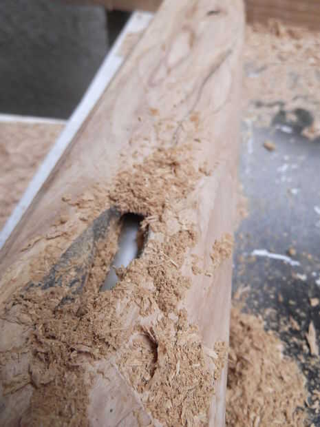 En algún lugar en medio de la manija de un agujero apareció debido a una herida en el registro. Cirugía plástica necesitada!