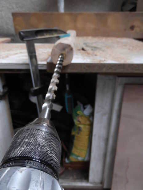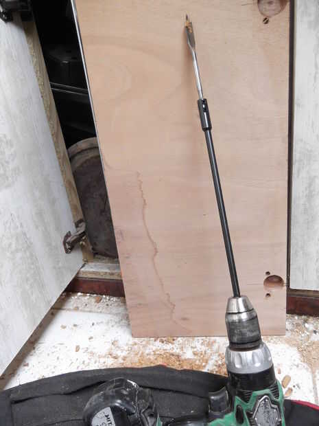 Buscar la broca más larga se puede encontrar (tuve uno de casi 1) o utilice una extensión para brocas planas de madera.