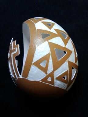 Básicamente, dibujó mi diseño en lápiz y quita el huevo hasta la profundidad de lo brown en el huevo primero. Así cuando todo de corte realmente intrincado tallado salidas las vibraciones de retirar todo el marrón no iba a romper el huevo.